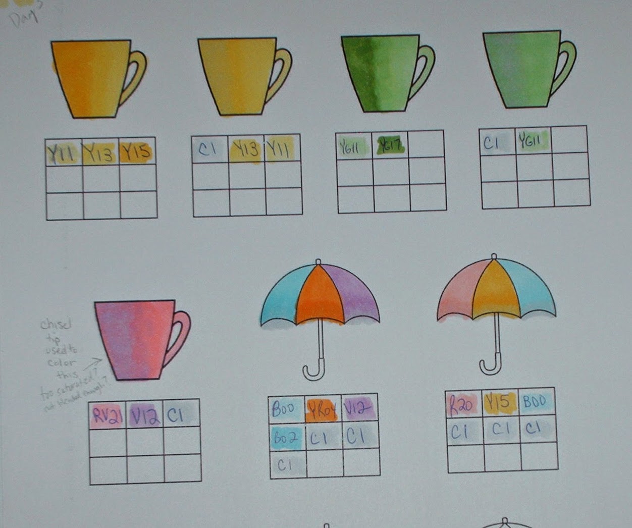 the lesson was about shading with a gray marker. I only have a C1 marker so the technique worked good for me when I used one light color to shade with it. This is shown on the second umbrella on my practice
